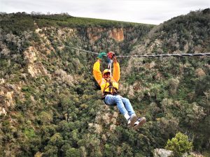 Our Knysna Zipline has especially been designed and installed to enhance the natural beauty of the Kranshoek Sanparks picnic site. The ziplines are some of the longest you will experience and definitely not for someone with a fear of heights. Extremely long cables crisscross the gorge at the picnic site and with heights of +- 200 meters it will certainly be a memorable experience.